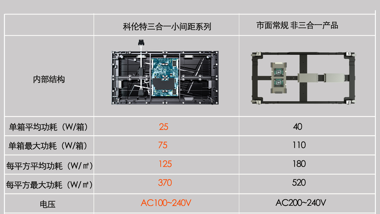 以G22恒峰LX-lite三合一小间距P1.2为例,其单箱平均功耗仅仅25W,比市面上其他非三合一的产品功耗降低37.5%,并获得整机3C和节能认证。以一块100平方的屏幕每天开5小时计算,G22恒峰LX-lite三合一小间距将比市面上非三合一产品一年节约电费约1.4万元